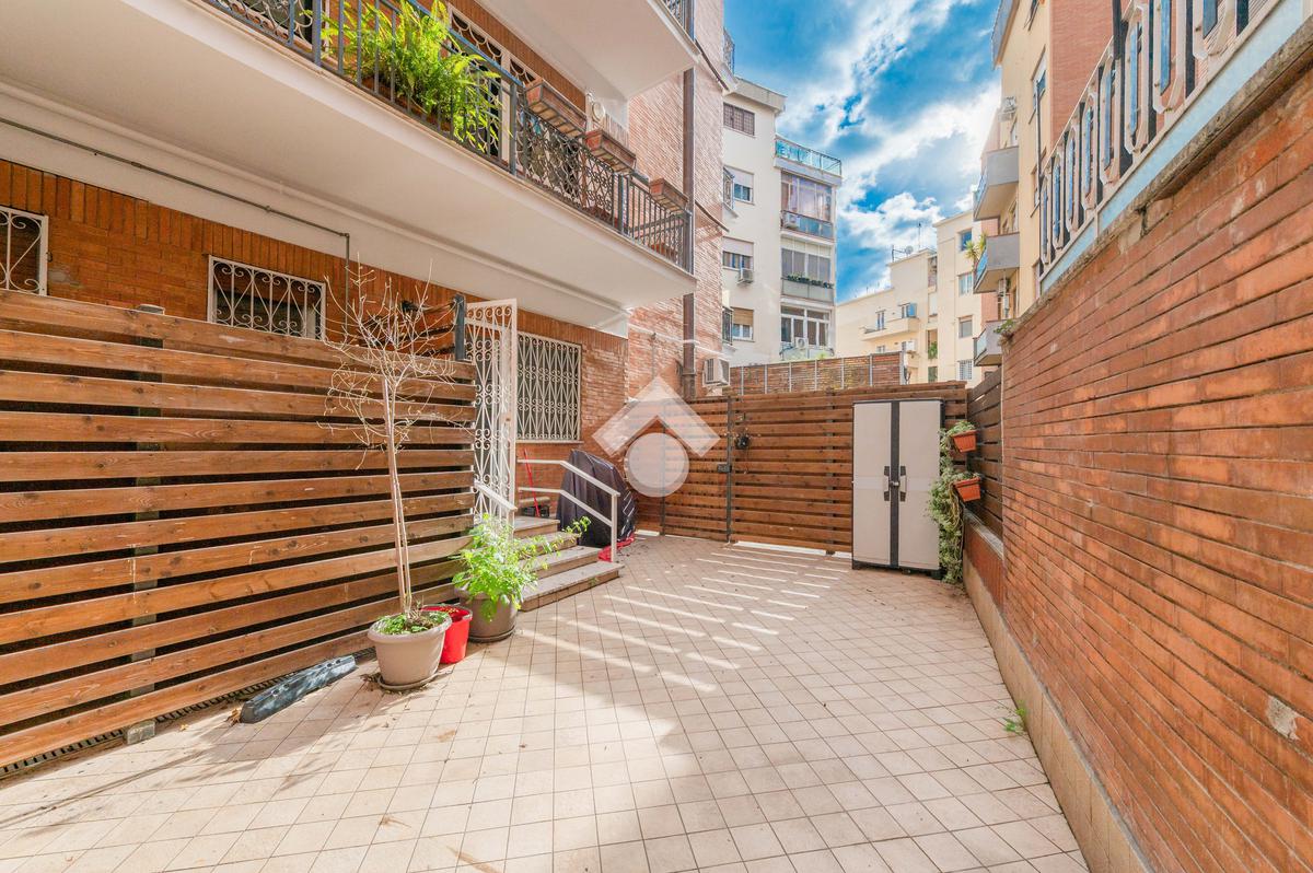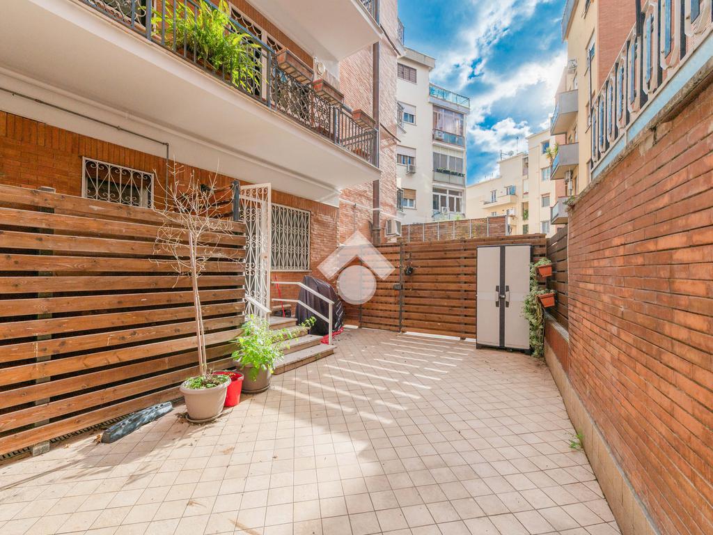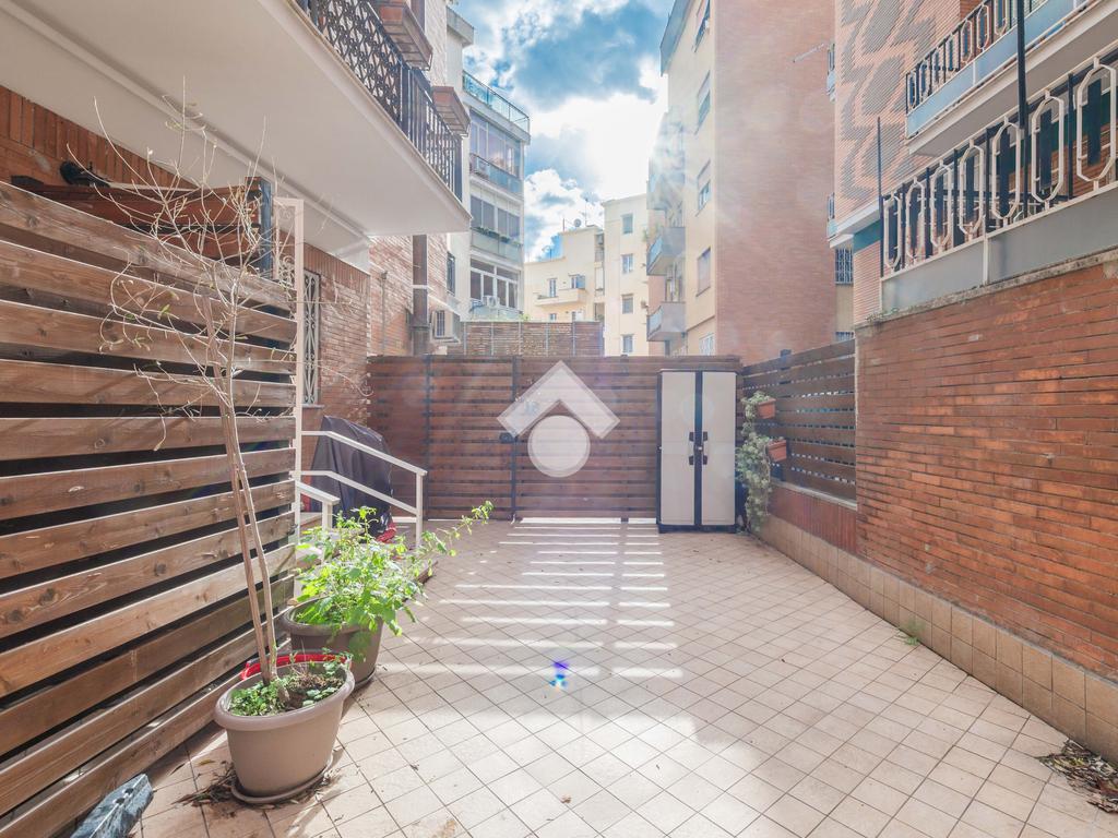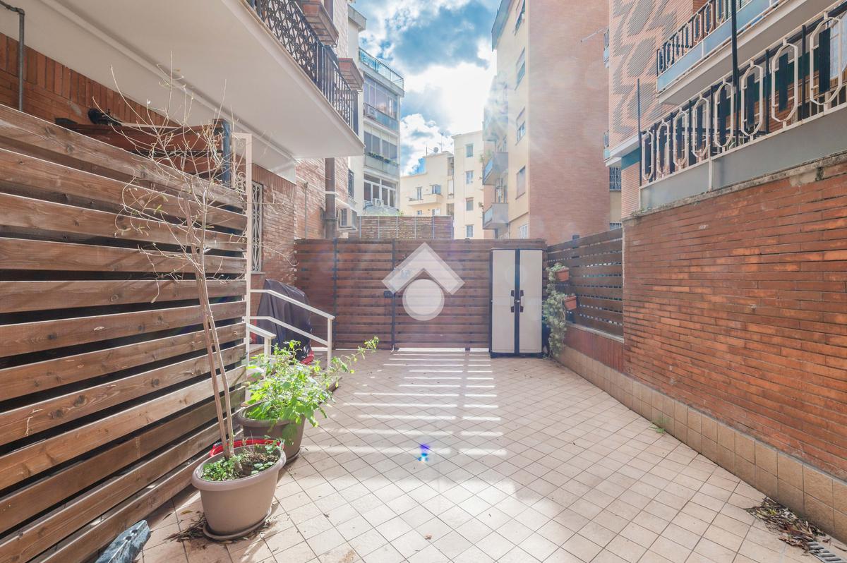 Nel cuore del quartiere Prati Balduina a Roma, proponiamo un trilocale con ampio giardino pavimentato e posto auto.