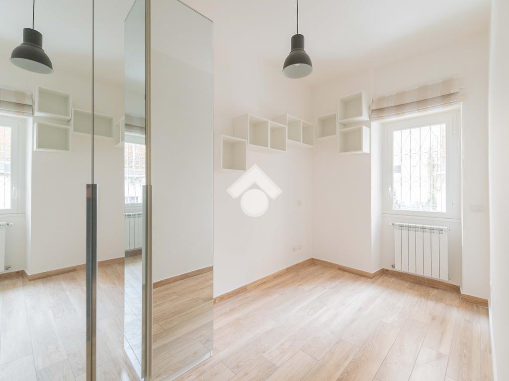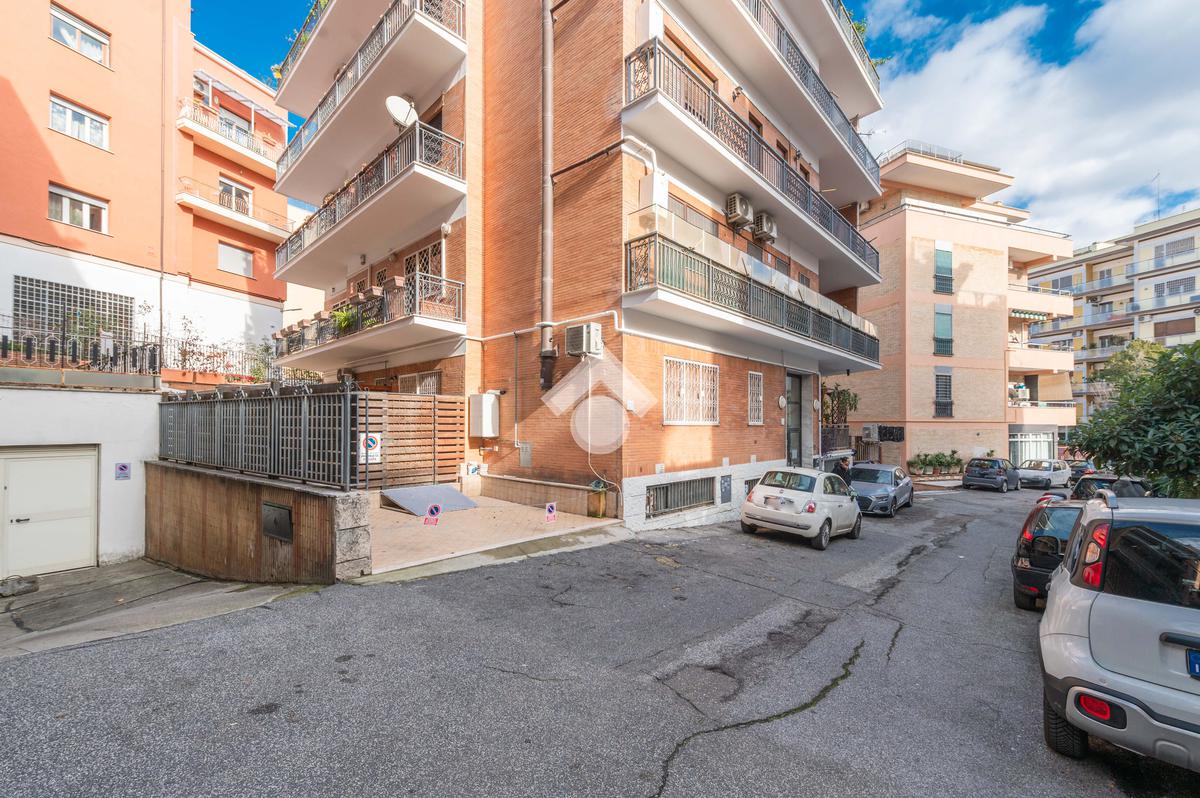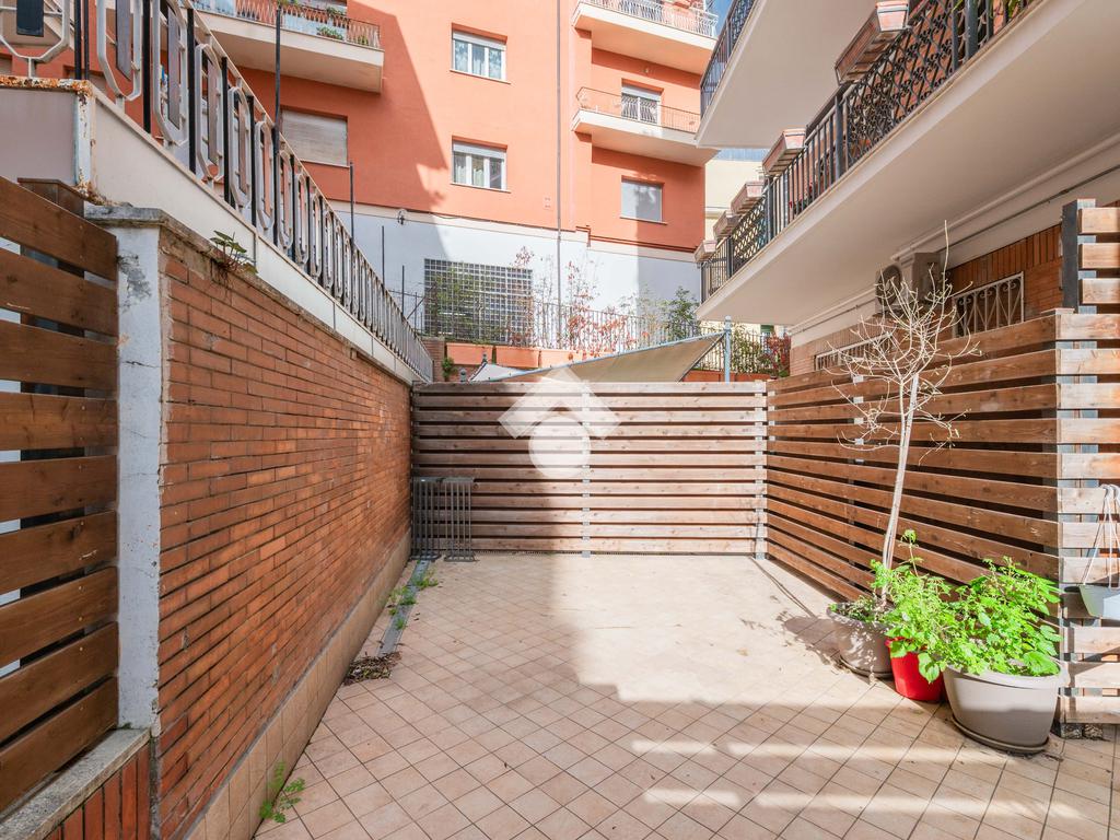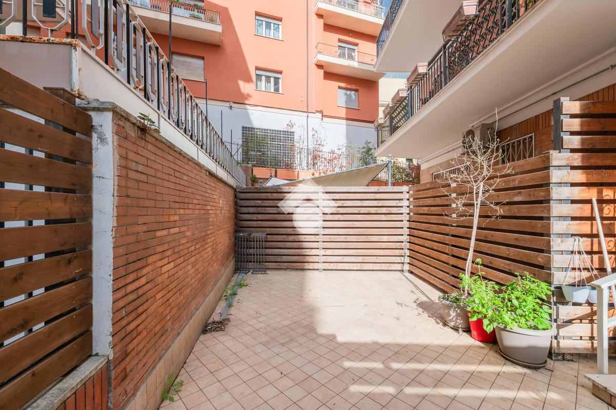 Nel cuore del quartiere Prati Balduina a Roma, proponiamo un trilocale con ampio giardino pavimentato e posto auto.